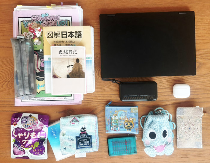 パソコンを持ち歩くことが増えると思うので、パソコンを収納するところがあるバッグがおすすめです!また、105分授業なので小腹がすいちゃうときもあると思います。糖分補給にグミやチョコをいれておくのもいいかも・・・!